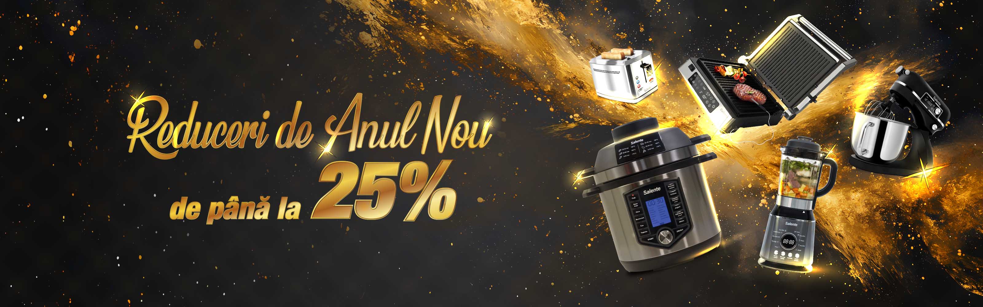 Profitați de reducerile unice de Anul Nou de la Salente! Am pregătit oferte avantajoase pentru o gamă largă de aparate de uz casnic practice, care vă vor ajuta să faceți față provocărilor zilnice mai ușor și mai eficient. Indiferent dacă căutați aparate fiabile pentru gătit, curățenie sau soluții inteligente pentru o casă modernă, acum este momentul ideal să le achiziționați cu până la 25% reducere la produsele selectate. Începeți anul inteligent și echipați-vă casa cu ajutoare de calitate, care vă vor ușura viața și în același timp nu vor pune presiune pe portofelul dumneavoastră.