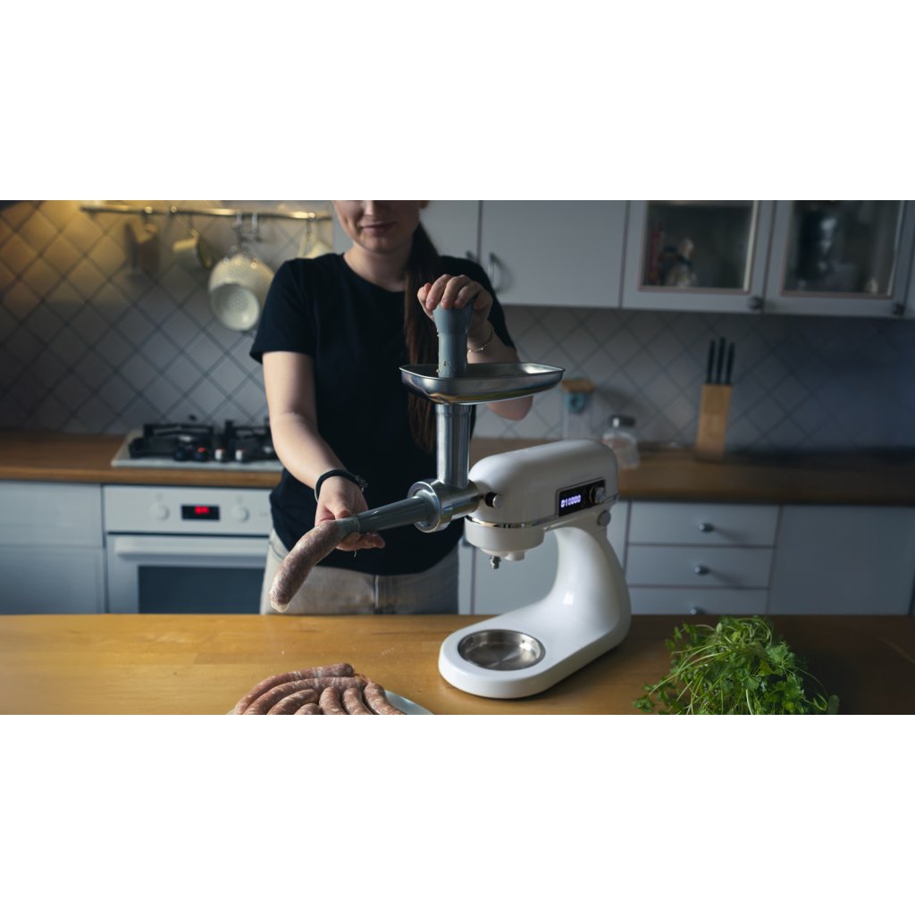 Cu accesoriile incluse, puteți prepara cu ușurință cârnați, crenvurști sau paste proaspete în diverse forme – de la spaghete clasice la tagliatelle plate și bucatini goale în interior. Cârnații dumneavoastră de casă vor fi lipsiți de conservanți, coloranți artificiali și alte adaosuri nedorite. Pur și simplu schimbați accesoriul și începeți să umpleți mațele. Oricine poate face asta! Cu acest robot, veți deveni un adevărat maestru în bucătărie, cu multe trucuri culinare pregătite oricând.