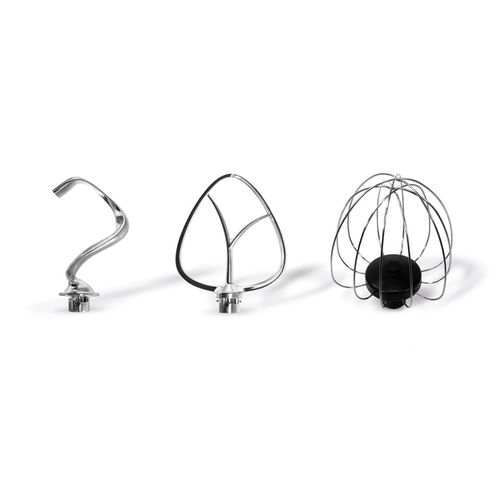 Telul tip balon poate bate albușurile atât de tare încât puteți întoarce bolul cu susul în jos – și acestea nu se vor mișca deloc. Frișcă perfectă sau budincă cremoasă? Gata în doar câteva momente! Paleta de amestecare din aluminiu ultraușoară se descurcă cu ușurință cu aluaturile pentru pandișpan, clătite sau creme dense. Cârligul special pentru aluat procesează fără efort aluaturi dense pentru pizza, pâine, precum și chifle de casă, chifle crocante sau brioșe moi pentru burgeri. Vă este deja poftă?