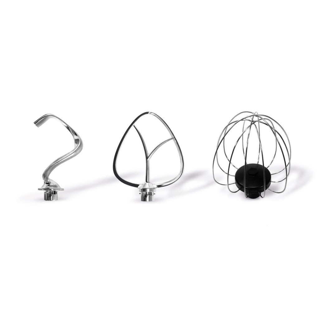 Telul balon pentru bătut poate bate albușurile până la o consistență atât de fermă încât puteți întoarce bolul cu susul în jos – și albușurile nu se vor mișca deloc. Frișcă perfectă sau budincă cremoasă? Gata în doar câteva clipe! Telul de amestecare din aluminiu ultraușor se descurcă excelent cu aluaturile pentru torturi sau clătite și cu cremele mai dense. Cârligul special de frământare procesează cu ușurință aluaturi grele pentru pizza sau pâine, dar și cornuri de casă, chifle crocante sau brioșe pufoase pentru burgeri. Vi s-a făcut poftă deja?