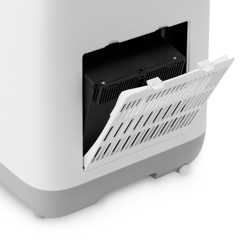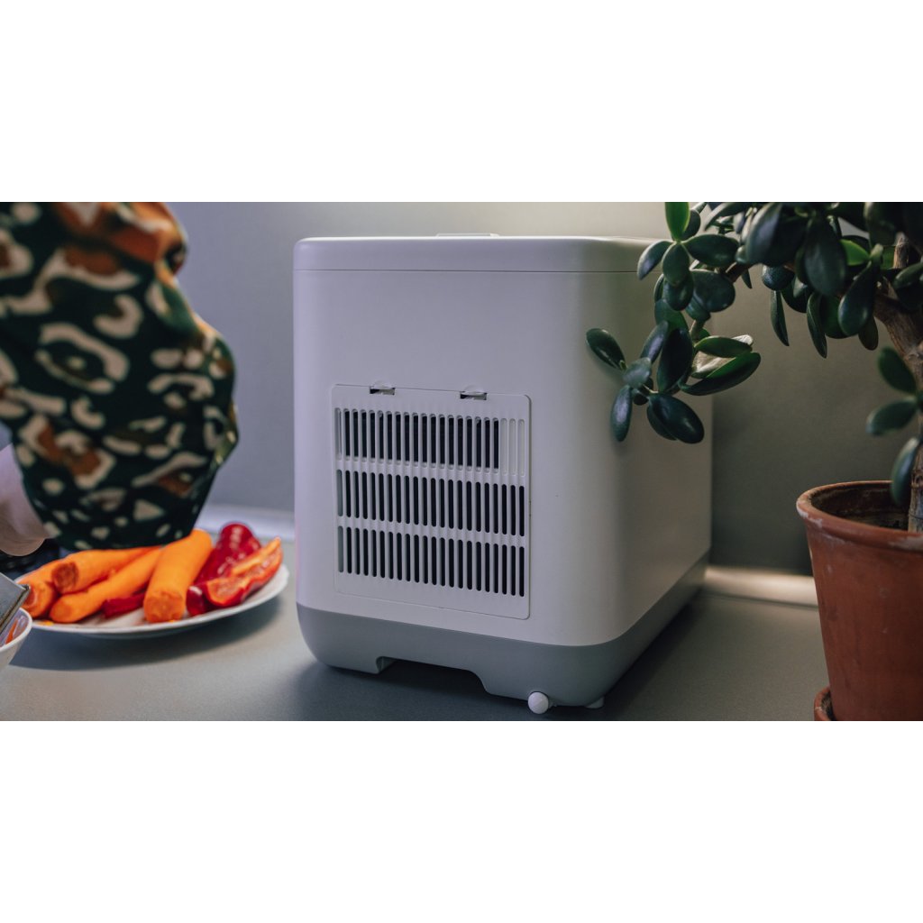 O parte indispensabilă a composterului electric este un filtru anti-miros cu cărbune activ (cu o durată de viață de 300 ore de funcționare), care vă protejează bucătăria de orice mirosuri neplăcute. Datorită lui, este posibil să aveți composterul nu într-un colț al grădinii, ci chiar acasă. Sistemul de filtrare include, de asemenea, un pre-filtru de spumă lavabil suplimentar, care acționează ca o primă linie defensivă și prelungește durata de viață a filtrului principal de carbon.