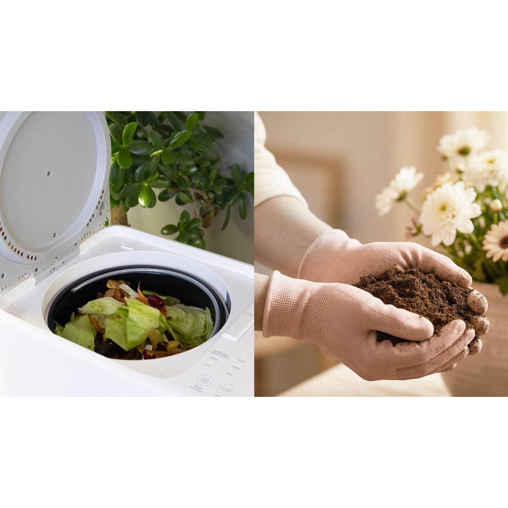 Volumul original al deșeurilor biologice este redus cu până la 93% în composterul electric Salente EcoBoost. Aceasta înseamnă că dintr-un coș plin de gunoi rămâne doar un pumn de substrat valoros, care altfel ar ajunge într-un incinerator sau depozit de gunoi. Rezultatul întregului proces este un material de compost uscat și incredibil de ușor, pe care îl puteți folosi ca îngrășământ natural nutritiv pentru plante de interior, flori de balcon sau paturi de grădină. Alternativ, îl puteți adăuga la un composter clasic de grădină ca bază perfectă pentru compost.