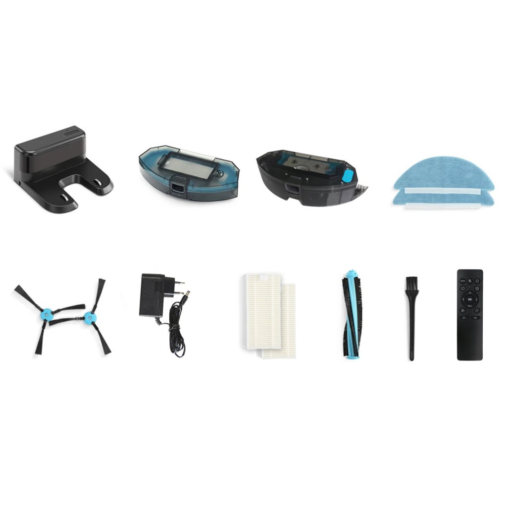 Navigare cu laser la 360 ° în timpul curățării, vorbește în limba română, aplicație mobilă în română, aspiră și șterge în același timp, adaptare la suprafața tipului podelei, continuare automată a curățeniei, recipient combinat pentru apă și praf, curățare programabilă, curățare pe zone, senzor TOF, pereți virtuali