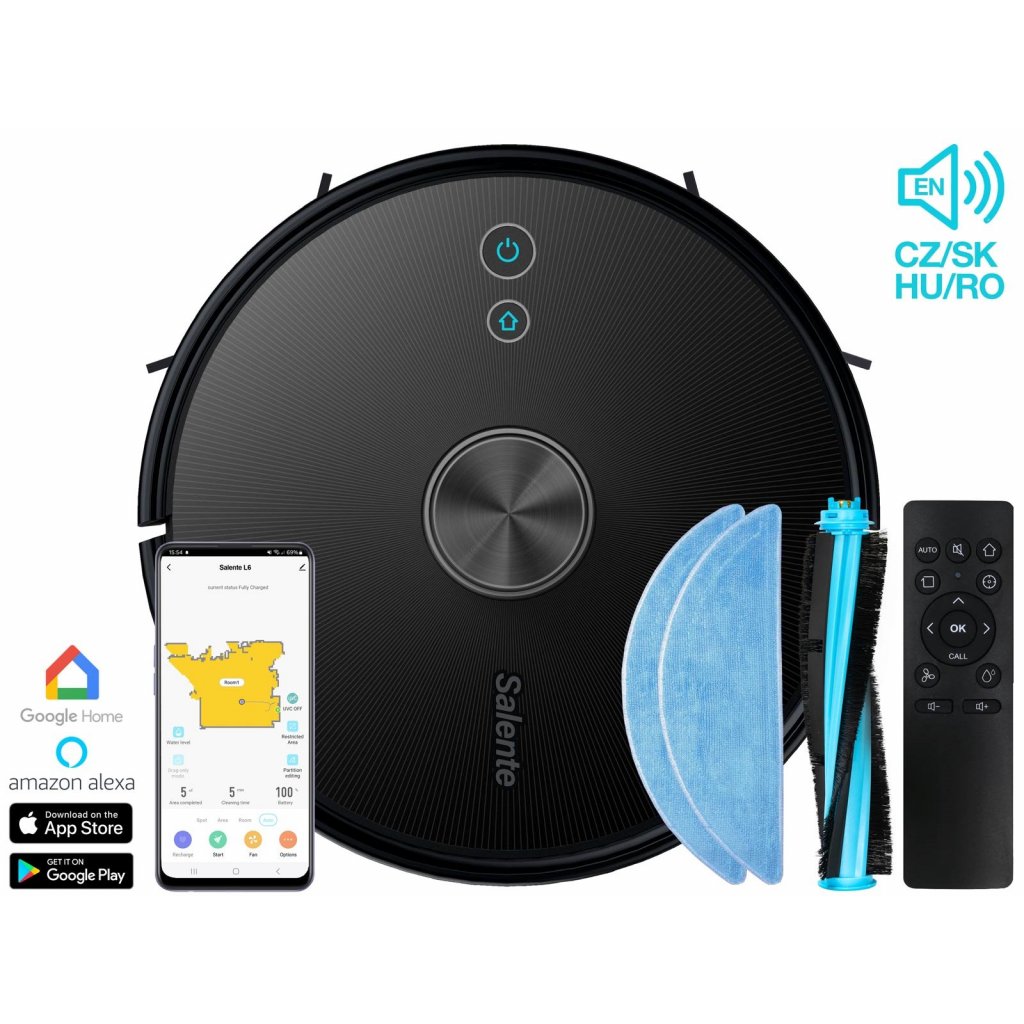 Sistemul de navigație 360° de ultimă generație a aspiratorului Salente L6 asigură o orientare ideală și o curățare rapidă și eficientă. Veți fi informat la timp, în limba română, despre toate evenimentele aspiratorului și îl puteți controla de oriunde, cu ajutorul aplicației. Recipientul combinat pentru apă și praf asigură aspirarea și ștergerea podelei în mod simultan. Economicul și puternicul motor BLDC, continuarea automată a curățeniei sau adaptarea în funcție de suprafața podelei sunt alte câteva dintre calitățile aspiratorului Salente L6, care vă vor face viața mult mai ușoară.
