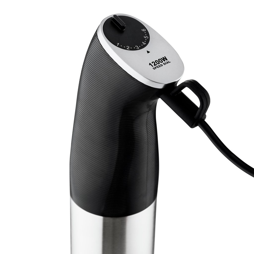 - Combinația specială de ergonomie și suprafața canelată a mânerului blenderului asigură o prindere fermă în orice situație
