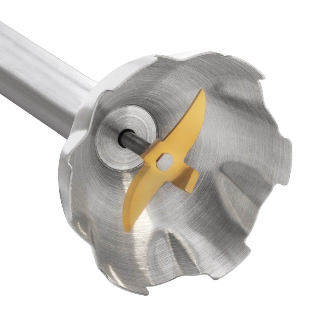 Sub corpul elegant din oțel inoxidabil bate o inimă puternică sub forma unui motor DC de 1200W cu o funcționare surprinzător de silențioasă – în timp ce o adevărată furtună de putere se petrece în interior, la exterior se aude doar zumzetul blând al unui ajutor mulțumit. Designul cu patru brațe al cuțitului de amestecare cu o funcție utilă de zdrobire a gheții asigură că nici măcar apa înghețată sau fructele din congelator nu vor fi o problemă. Adevărata bijuterie sunt lamele de amestecare din titan cu o duritate extremă care își păstrează ascuțimea superioară chiar și după mulți ani de utilizare intensivă.